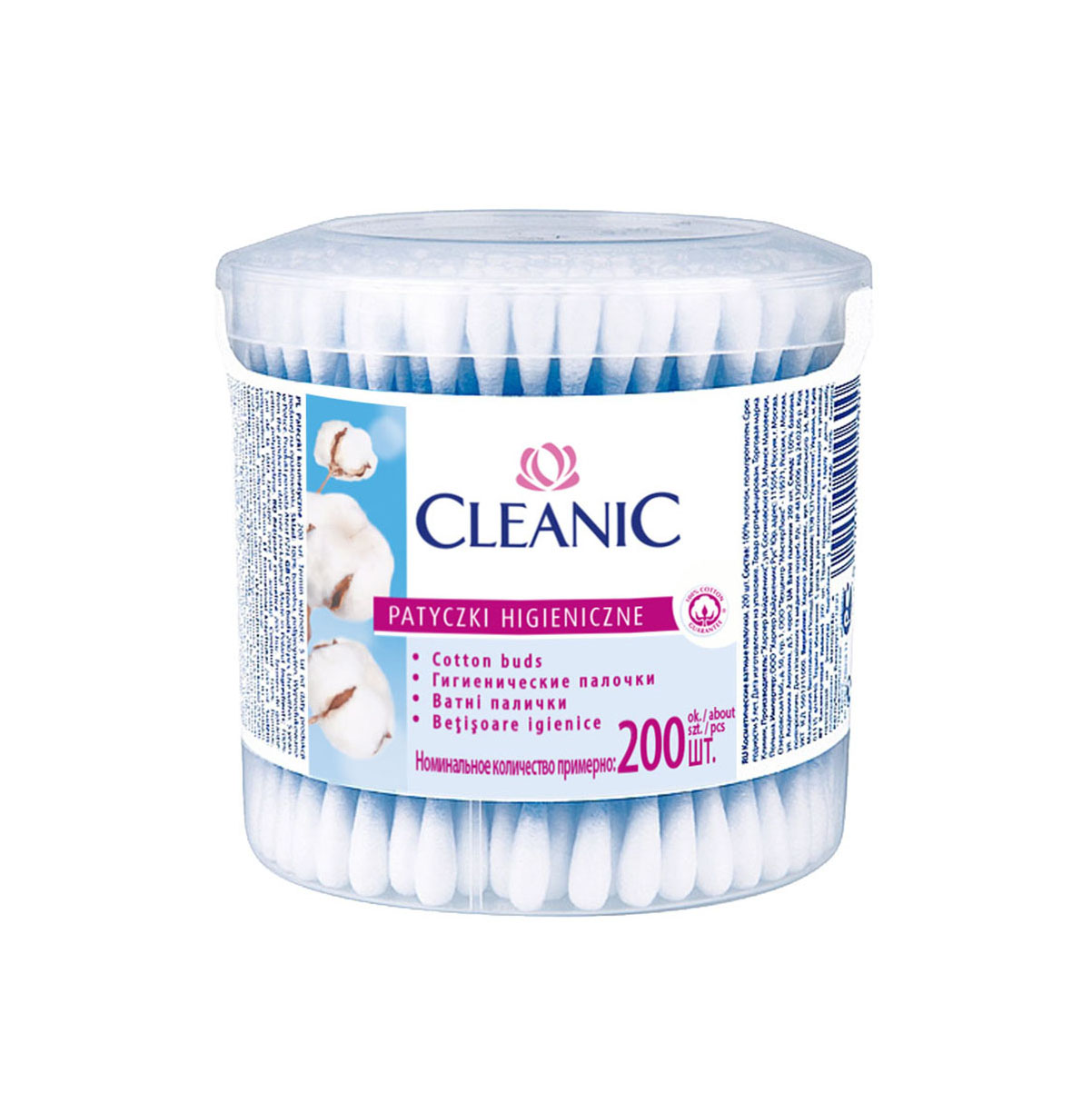 Ватные палочки Cleanic (круглая коробка), 200шт/упак